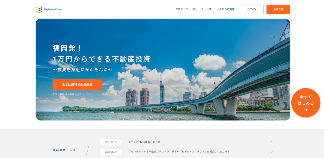 「Beginneres Cloud」は、福岡県に本社を置く株式会社Good不動産が運営する、1口1万円からインターネット上で行える不動産投資です。